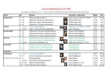 • Tiistaisin – Valmentajat: Antti Ainoa ja Maire Coutinho