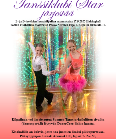 Starin pari Joni Henriksson & Julia Pankkonen voittivat ja Petri & Ulla Järvinen sijoittuivat toiseksi GP-kisan seniori 1 latin-luokassa. Star onnittelee erityisesti heitä, mutta myös kisan muita mitalisteja.