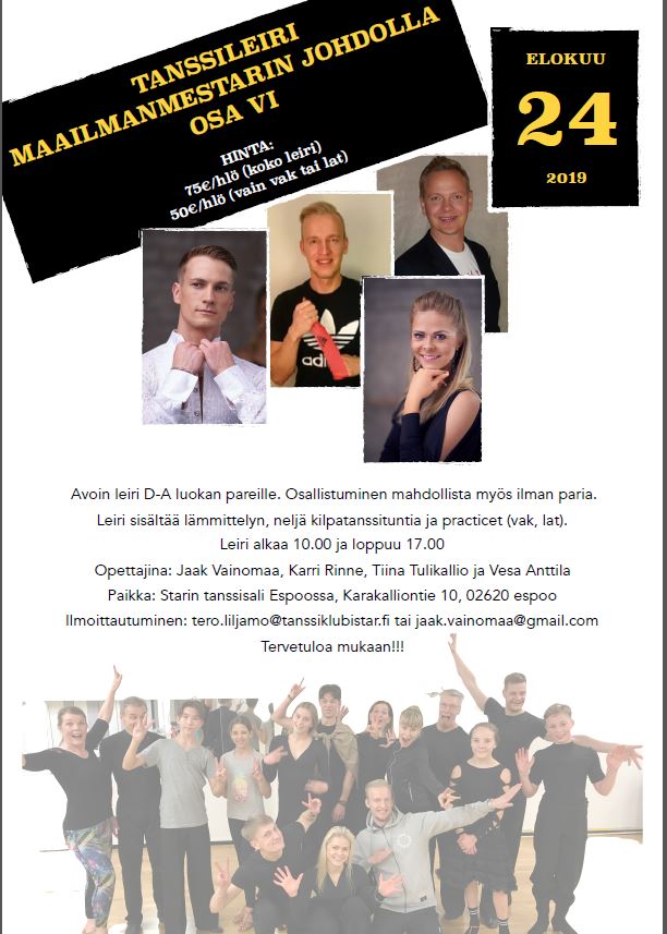 Tanssileiri maailmanmestarin johdolla osa VI 24.8.2019